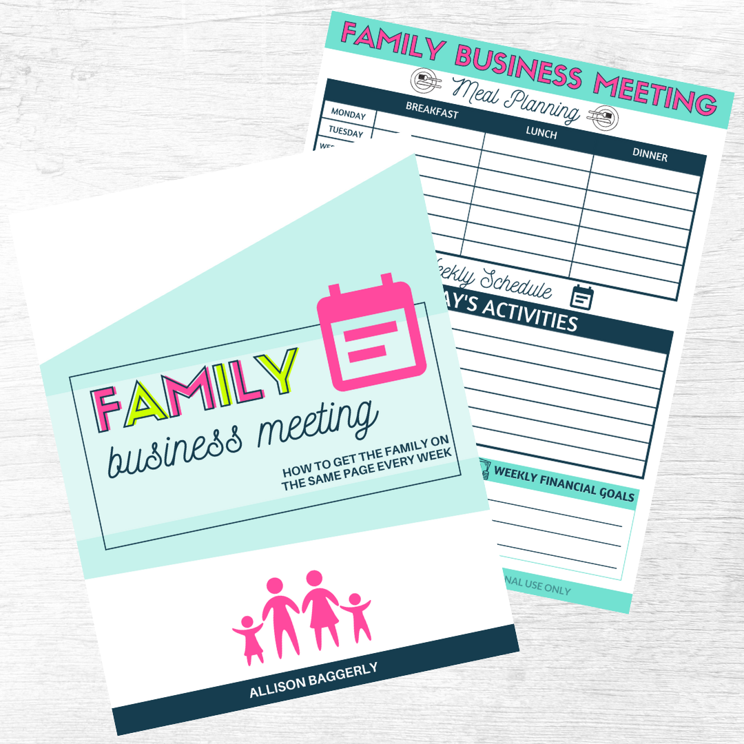Having a weekly family business meeting to go over your week and budget can help you with so many things! It’s perfect for getting on the same page with your spouse, planning out the week to avoid the last minute McDonald’s drive thru runs, and much, much, more. Communicating about your upcoming week will help the whole family get on the same page which feels amazing!