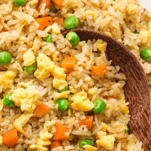 To cook: Add rice, water, and a pinch of salt to the instant pot. Cook for 4 minutes at high pressure. Let the pressure release naturally. Cook the eggs, fry the rice, and combine everything. Click here to get the full recipe from Little Sunny Kitchen.
