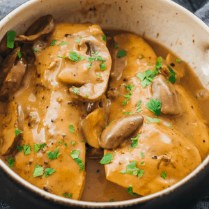 To cook: Saute sliced chicken breasts with olive oil in an instant pot. Add garlic and mushrooms and cook for a few more minutes. Add the remaining ingredients and finish cooking. From start to finish, you can have homemade Chicken Marsala in right under 30 minutes. Click here for the full recipe from Savory Tooth.