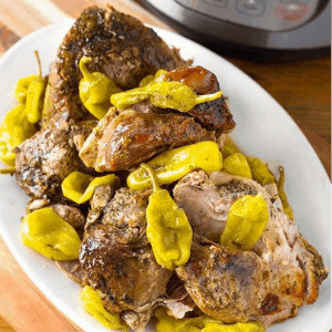 To cook: Add all ingredients to the instant pot and cook for 70 minutes. Then, let it release naturally for 15 additional minutes. Remove meat. Cook gravy in the instant pot with the remaining juices and it’s ready to eat. Click here for the full recipe from Simply Happy Foodie.