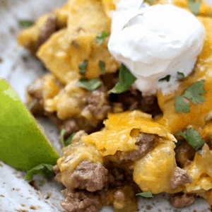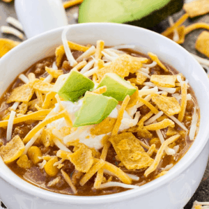 To cook: Saute meat and onions in an instant pot. Drain meat. Add remaining ingredients and cook for 20 minutes. Serve with Fritos, sour cream, and/or avocados. Click here for the full recipe from Oh Sweet Basil.