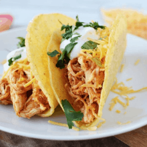 To cook: Follow the recipe to cook the chicken. Shred the chicken return and to pot with additional seasonings. When finished- it’s ready for a taco shell and your favorite toppings. It only has 4 ingredients and takes 12 minutes to cook and prepare. For the full recipe click here from A Mom’s Impression.