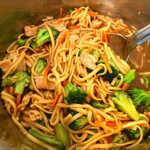 To cook: Saute seasoned chicken. Remove from pot. Add vegetables to pot and saute 4 minutes. Add remaining ingredients and finish cooking. From start to finish it’s ready in under 20 minutes. Click here for the full recipe from That’s What Che Said.