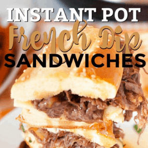 To cook: Cook all of the ingredients into the instant pot and cook for 60 minutes. Shred beef. Put on sandwiches with a slice of cheese. Click here for the full recipe from Eating on a Dime.