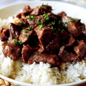 To cook: Saute seasoned beef tips. Remove and saute the onion. Add all of the ingredients back to the instant pot and finish cooking. Add to the top of cooked white rice (can use instant). From start to finish it will take just under 50 minutes. Click here for the full recipe from Soulfully Made.