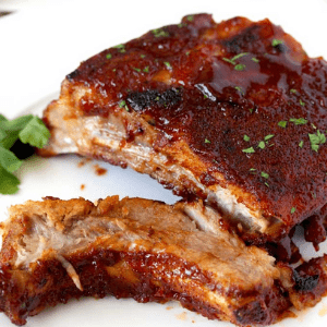 To cook: Mix the dry rub ingredients together. Rub onto ribs. Cook and then coat with bbq sauce. Cook a few minutes longer and then you’re done. It will take about 40 minutes from start to finish. Click here for the full recipe from Lemon Blossoms.