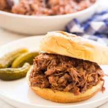 To cook: Add all ingredients to the instant pot and cook for 60 minutes. Let the pressure naturally release for 15 minutes. Put on a bun and top with your favorite bbq sauce and enjoy! Click here for the full recipe from The Recipe Rebel.